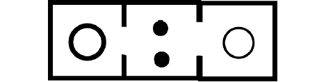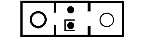 The schematic drawing shows three opaque cages in a row, with a dominant chimp in the first and a submissive in the third, and two pieces of food in the middle cage. The doors from the outer to the middle cage are opened just enough that each chimp can peek at food and see other chimp eyeing it too.