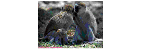 Empathetic mirroring of emotions is crucial for the reproductive success of animals living in groups, and is among the many complex social interactions displayed by the East African Vervet monkeys shown in this picture. They also classify relationships into types, and also classify sounds according to the objects and events they denote (leopard alarm, snake alarm, eagle alarm, each associated with specific behaviors). They have a laser beam sort of intelligence focused to a very narrow sphere. There is no evidence that monkeys attribute mental states to other monkeys. They are skilled observers of each other's behavior, but can't be said to analyze the motives underlying behaviors. The monkeys make subtle and penetrating discrimination in social matters, yet don't seem to transfer this capacity to other matters. They do not seem to have knowledge of their knowledge, to `know that they know', in the sense of being aware of their own states of mind and using this awareness to explain or predict the behavior of either themselves or others.