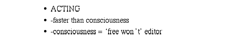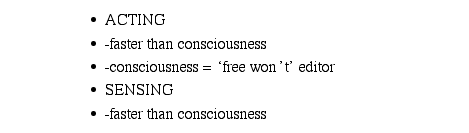 Think of yourself as being a msec watcher or manager, the epochs of sensing, feeling, thought, and action that occur in the second or less after some new input is leading to a behavior.