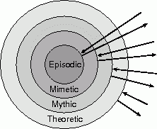 episodic, mimetic, mythic, and theoretic, with more recent stages predominating